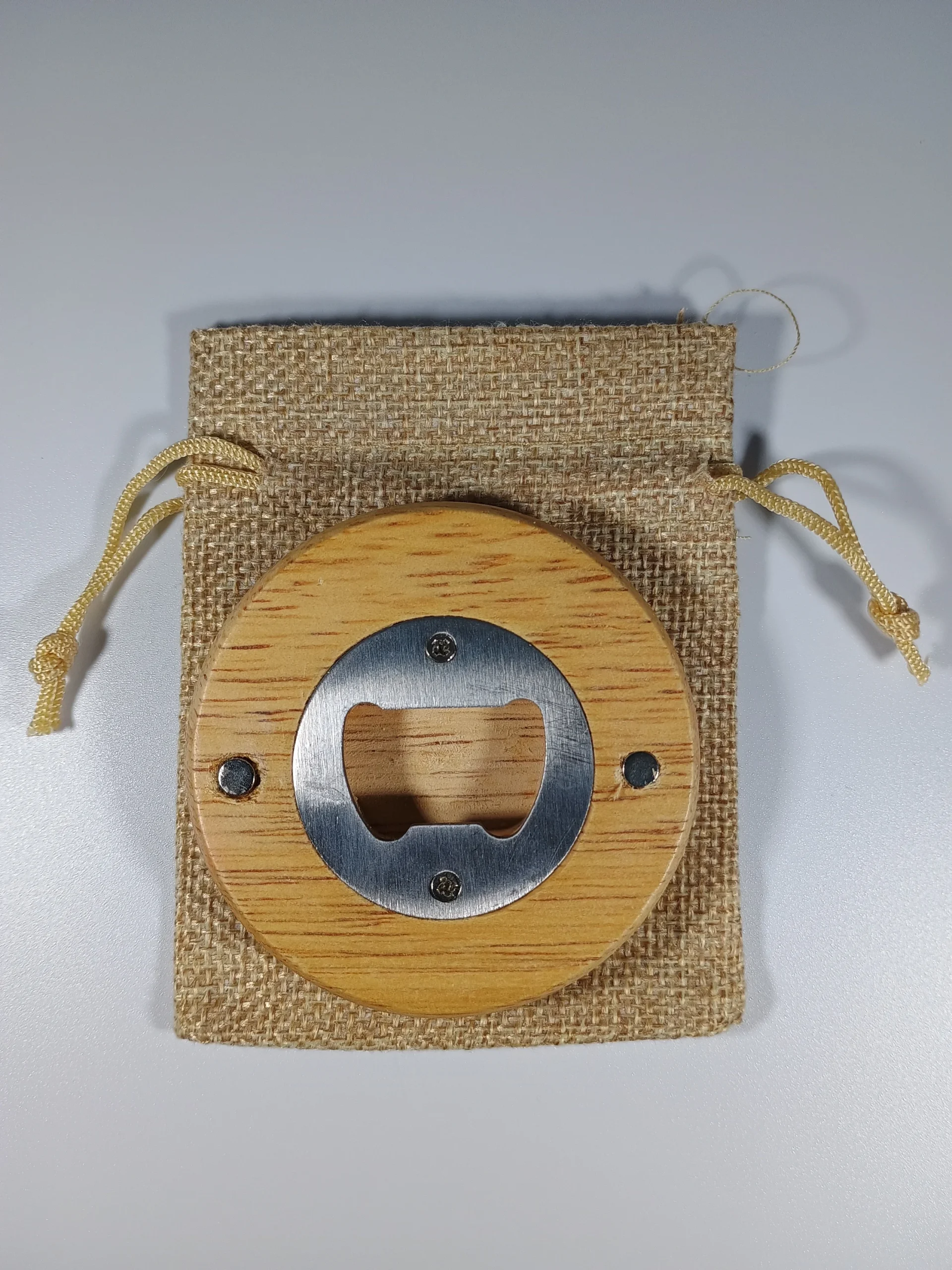 The bottle opener is laser engraved in Scotland for us, and is supplied in a drawstring bag.